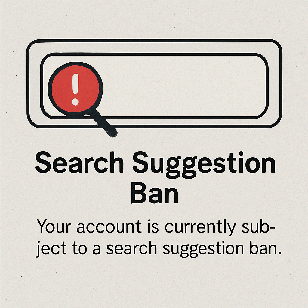 특히 신규 계정에서 서치 제안 밴이 자주 발생합니다. 이유는 다음과 같습니다:
