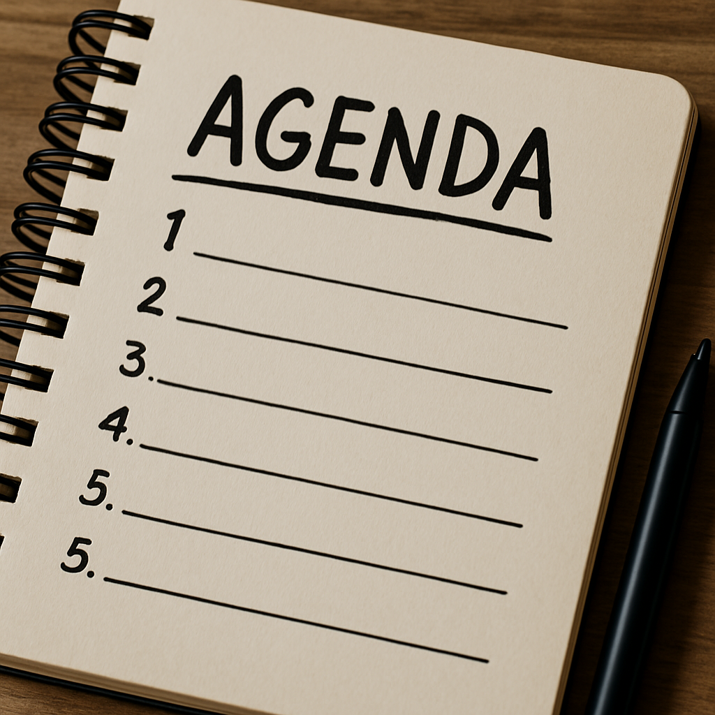- 뜻: 회의나 토론에서 다룰 항목이나 주제, 또는 정책 목표·우선순위 과제를 뜻합니다.