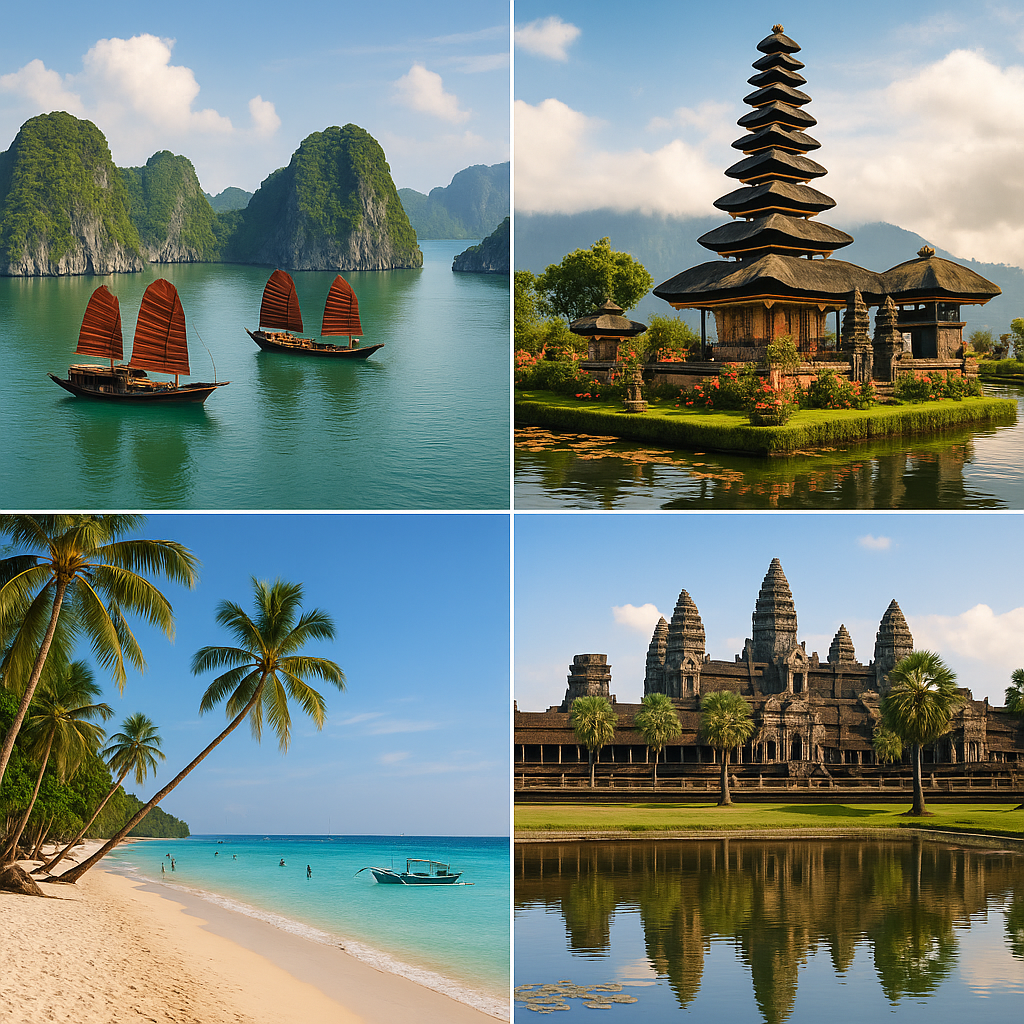 동남아시아는 비교적 저렴한 물가, 따뜻한 날씨, 아름다운 자연경관, 다양한 문화 체험을 동시에 즐길 수 있어 많은 사람들이 선호하는 해외여행지입니다. 특히 휴양, 관광, 음식, 액티비티 등을 두루 갖춘 나라들이 많아 목적에 따라 선택하기 좋습니다. 동남아시아의 대표적인 여행지들을 소개합니다.