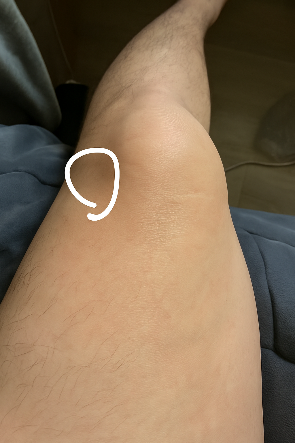 먼저 사진에 표시하신 부위는 무릎 바깥쪽(외측)에 가까운 대퇴골 외측관절융기(lateral femoral condyle) 주변이며, 정확히는 그 주변에 분포하는 장경인대(iliotibial band, IT band)와 외측 반월상연골(lateral meniscus), 슬개대퇴관절(patellofemoral joint), 그리고 슬개건(patellar tendon)의 영향을 받는 부위일 수 있습니다.