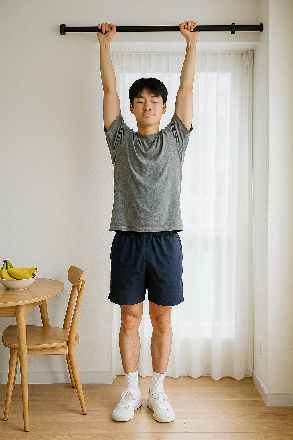 - 철봉 매달리기: 하루 3~5분씩 여러 번 나눠서 해도 좋습니다. 척추와 관절을 일시적으로 늘려주는 효과가 있습니다.