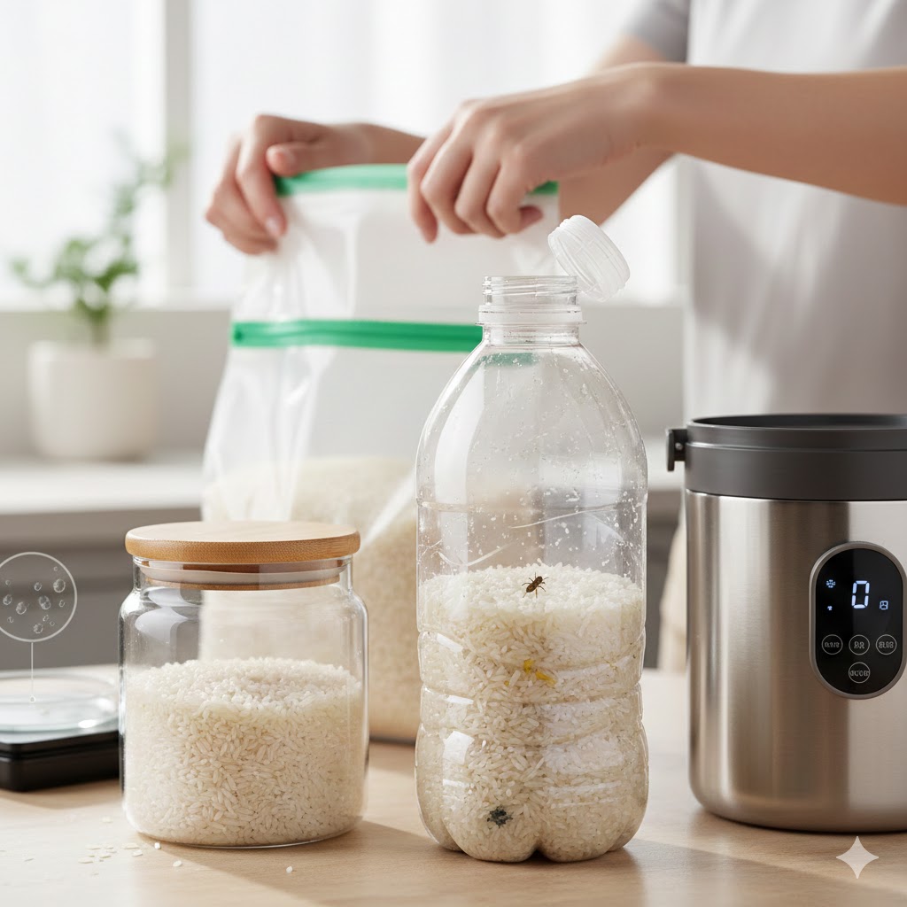 페트병에 쌀을 보관하는 것은 '세균 배양기'에 주식을 넣어두는 것과 다름없습니다. 당장은 편리해 보일지 모르나, 장기적인 관점에서는 미세 플라스틱, 중금속, 곰팡이 독소에 노출될 위험이 큽니다. 가족의 건강을 위해 지금 바로 페트병 속의 쌀을 전용 밀폐 용기로 옮기시는 것을 추천드립니다.
