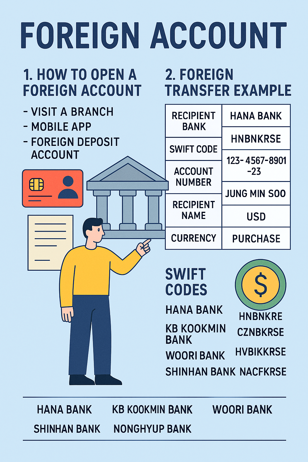 6. 외화 계좌 개설 방법, 이체 예시, SWIFT 코드 정리표